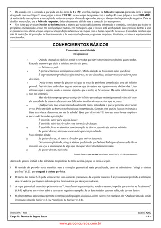 O documento apresenta instruções para a realização de uma prova com 150 itens, indicando que os candidatos devem marcar C para itens corretos e E para errados. Também fornece algumas considerações sobre os itens de Informática e sobre a língua portuguesa.