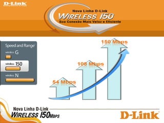 O documento fornece informações sobre a D-Link, incluindo sua fundação em 1986 em Taiwan, presença global com 105 escritórios em 100 países, e operações no Brasil desde 2000. Detalha também sua linha de produtos para redes sem fio, como roteadores, pontos de acesso e adaptadores, descrevendo suas especificações e aplicações.