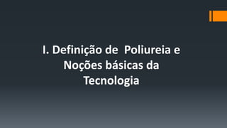 O documento apresenta uma visão abrangente sobre a tecnologia da poliureia, incluindo sua definição, histórico e propriedades mecânicas. Destaca diferentes tipos de sistemas de poliureia, métodos de aplicação e a preparação necessária para substratos como concreto e aço. Além disso, menciona casos de aplicação comercial e os equipamentos necessários para o trabalho com poliureia.