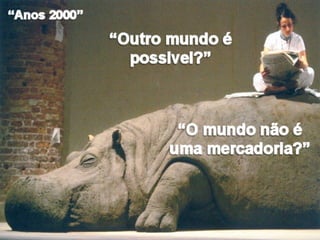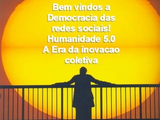 O documento discute o impacto das redes sociais na sociedade ao longo da história, desde civilizações antigas como os sumérios até as redes sociais modernas. Também reflete sobre como as redes sociais permitem a descentralização do conhecimento e a participação em massa, e como isso pode levar a uma nova sociedade emergente.
