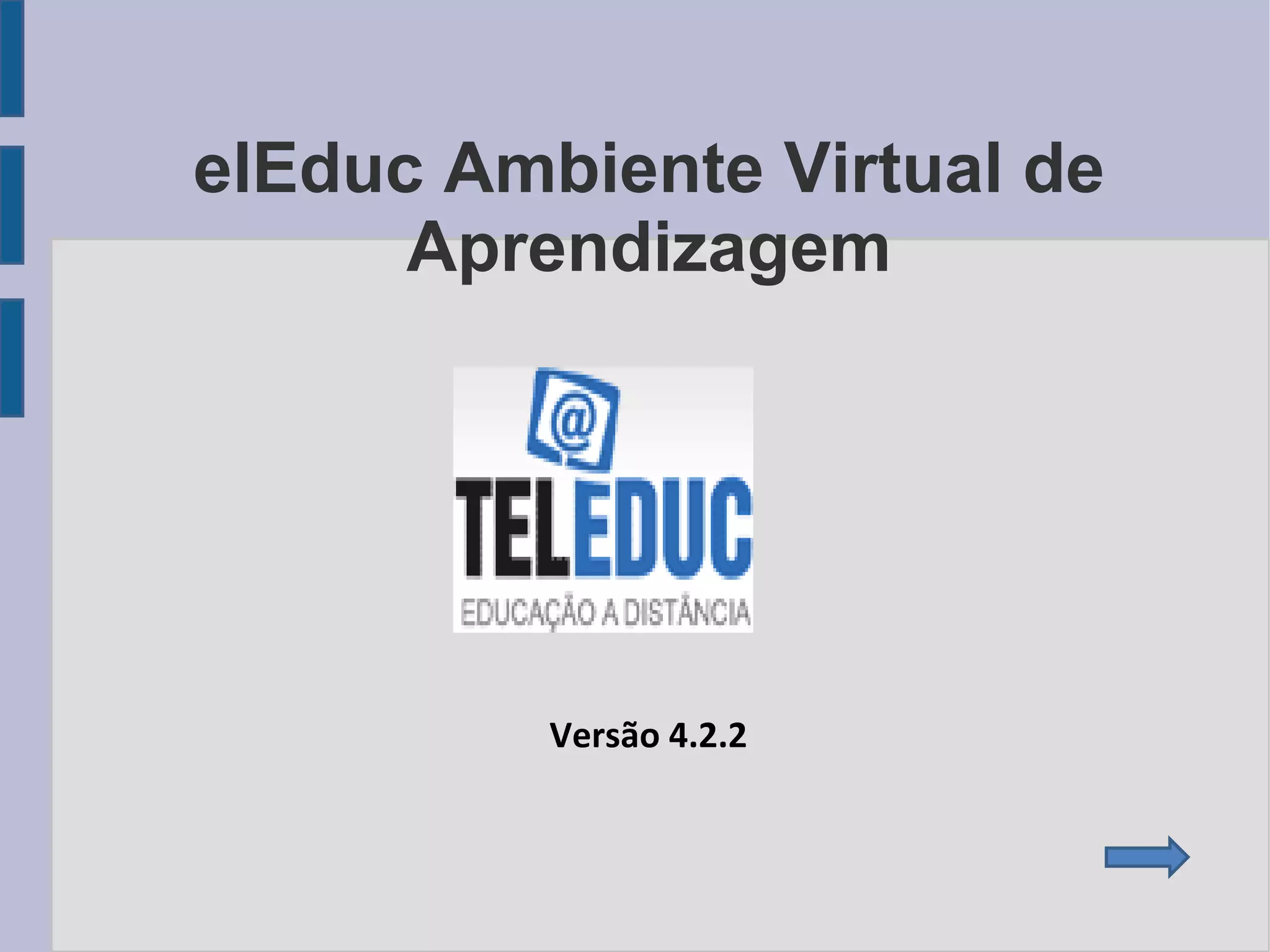 O documento descreve as funcionalidades do ambiente virtual de aprendizagem TelEduc, incluindo entrar no ambiente, menu de opções, estrutura do ambiente, dinâmica do curso, agenda, atividades, material de apoio, leituras, perguntas frequentes, exercícios, enquetes, fóruns de discussão, bate-papo, correio, grupos, perfil, diário de bordo, portfólio, acessos, intermap, busca e considerações sobre como o professor pode parametrizar as ferramentas.
