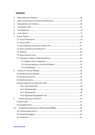 1. O documento descreve a história da telefonia desde as primeiras décadas do século XIX, quando o telégrafo permitiu a comunicação instantânea pela primeira vez.
