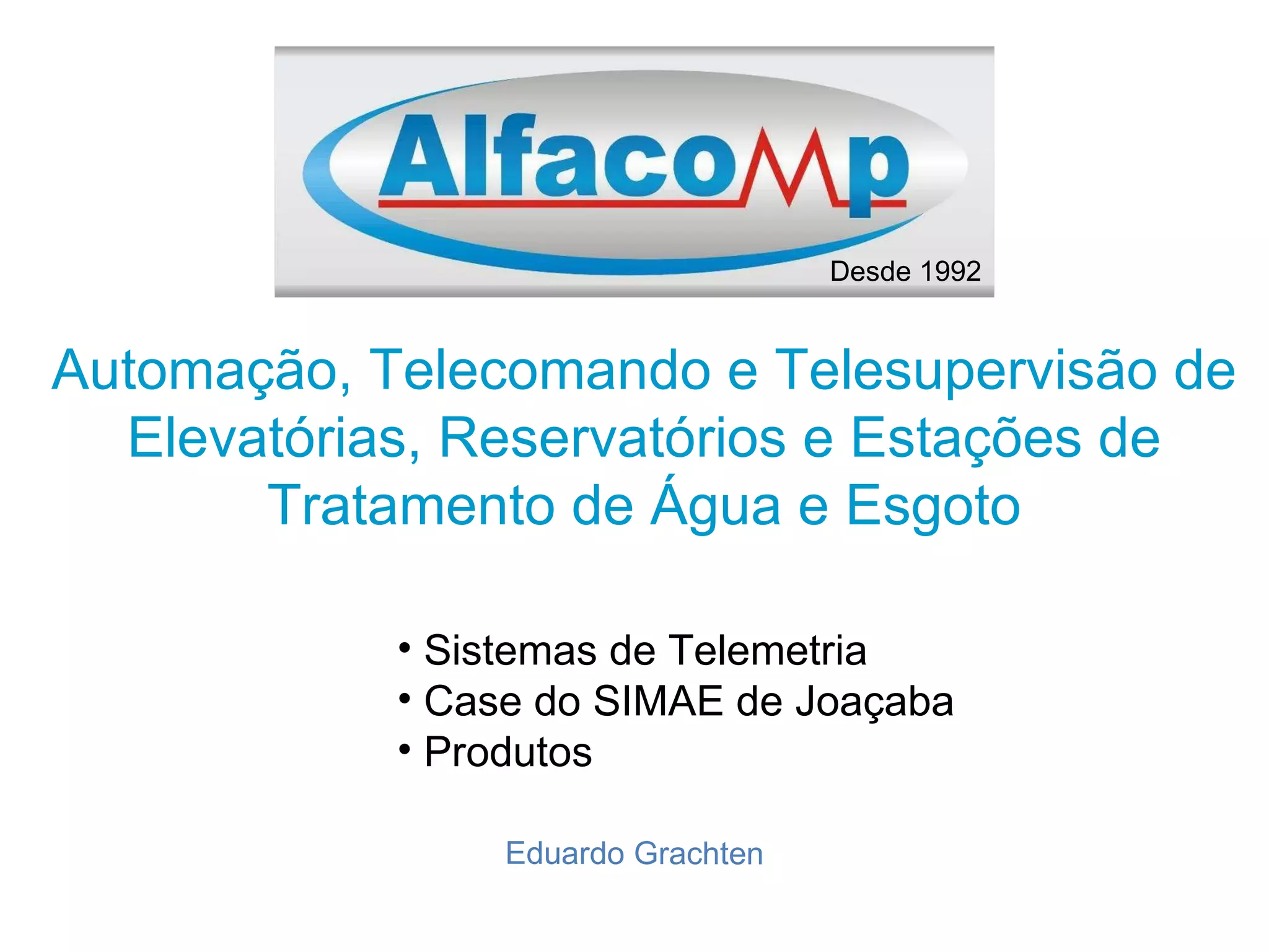 O documento discute os benefícios de um sistema de telemetria para o controle e monitoramento remoto de estações elevatórias, reservatórios e estações de tratamento de água. Um sistema de telemetria permite garantir o abastecimento de água, controlar perdas e reduzir custos, operar de forma eficiente e implementar programas de gestão e qualidade.