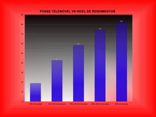 (1) O documento descreve a história e evolução do telemóvel desde a sua invenção por Martin Cooper na Motorola em 1973 até os dias atuais. (2) Inicialmente usados apenas para chamadas, os telemóveis modernos podem tirar fotos, filmar vídeos, enviar mensagens e acessar a internet. (3) A dependência dos telemóveis é cada vez maior, com quase todas as idades e classes sociais dependentes dos aparelhos para se manterem conectadas.