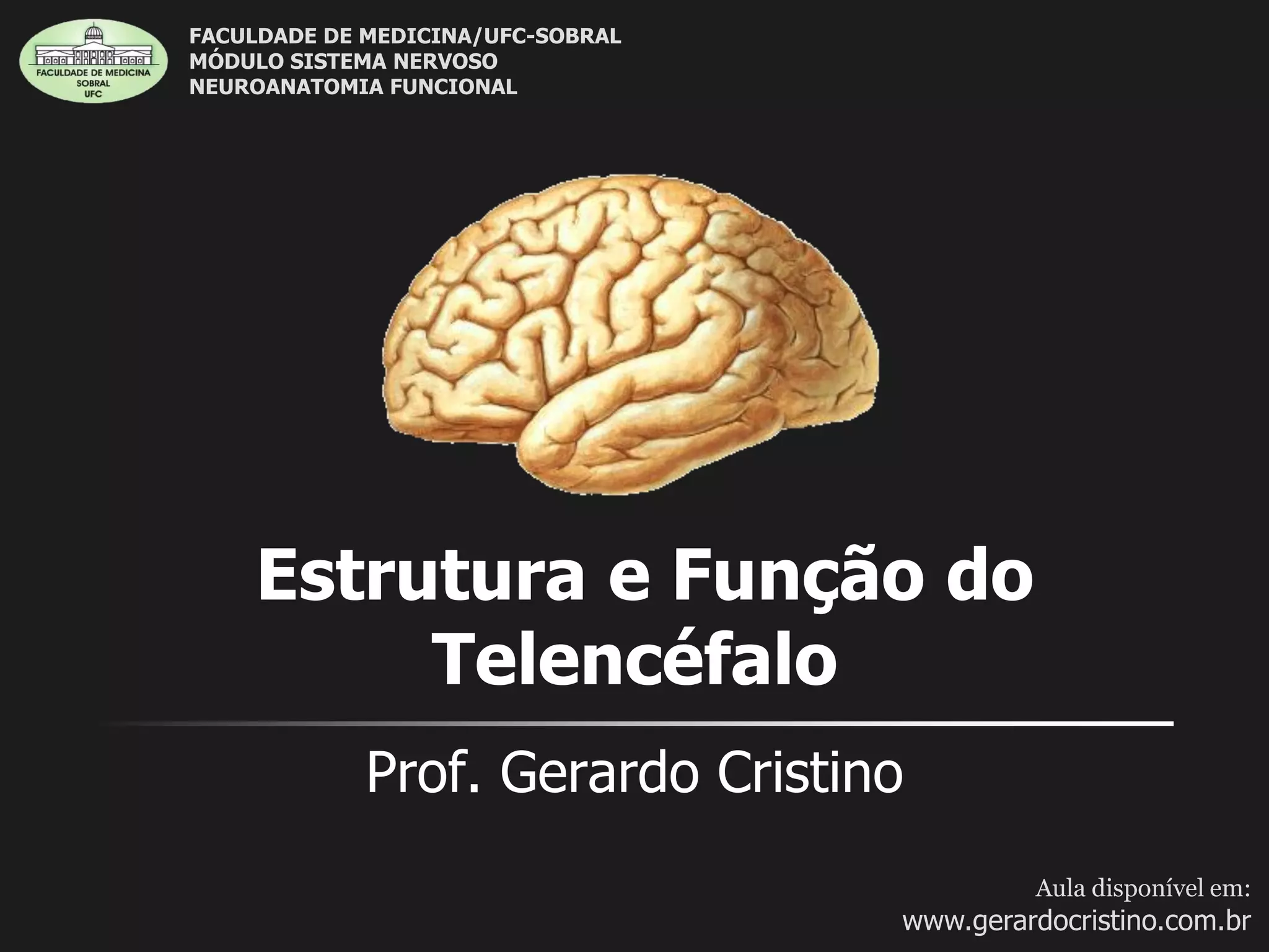 Este documento fornece um resumo da estrutura e função do telencéfalo em 3 frases: