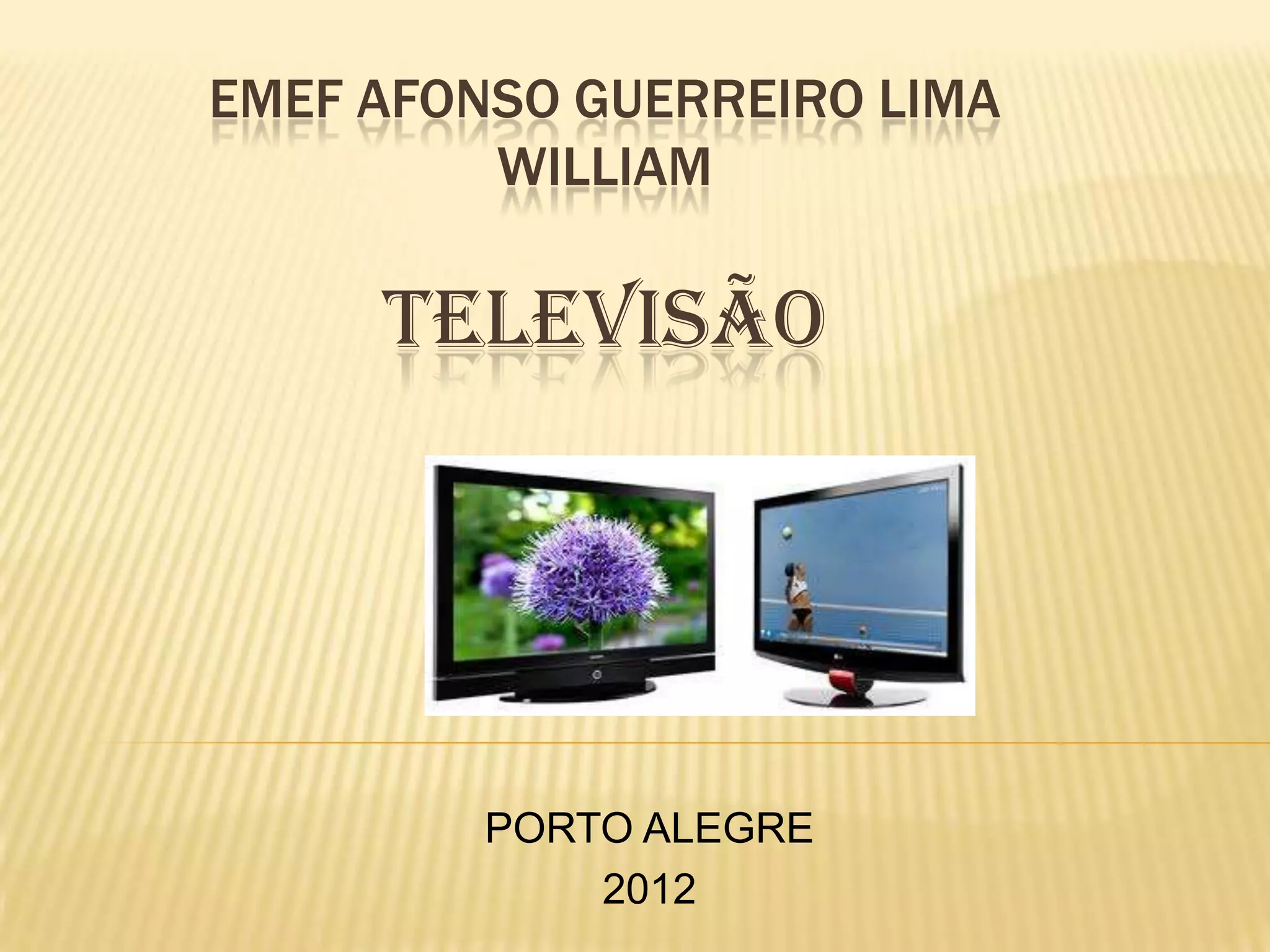 O documento resume a história da criação da televisão, desde as primeiras tentativas de transmitir imagens na década de 1920 até o desenvolvimento da TV a cores na década de 1950 e as transmissões via satélite na década de 1960, tornando a TV o principal meio de comunicação. Também descreve como as primeiras televisões eram grandes aparelhos em comparação com as versões compactas e de alta definição de hoje.