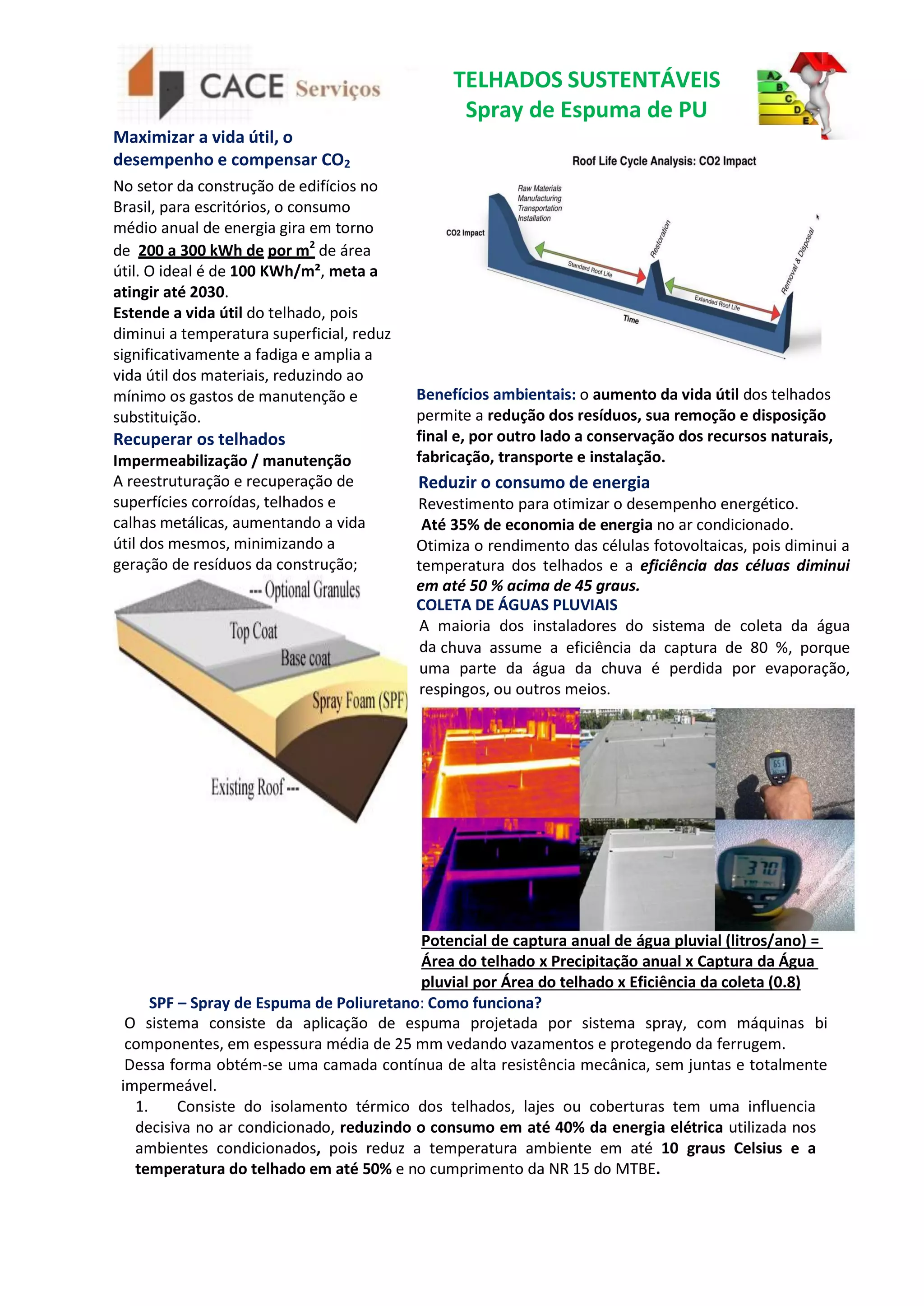 Telhados sustentáveis com spray de espuma de poliuretano maximizam a vida útil e desempenho, reduzindo o consumo energético em até 40% e compensando 100 toneladas de CO2 para cada 1000 m² ao longo de 20 anos. Além de melhorar o conforto térmico, eles minimizam a geração de resíduos e podem ser aplicados sobre diversos substratos, tornando-se uma solução prática e eficiente. O sistema contribui para a certificação LEED e é eficaz na impermeabilização e proteção contra resíduos perigosos.