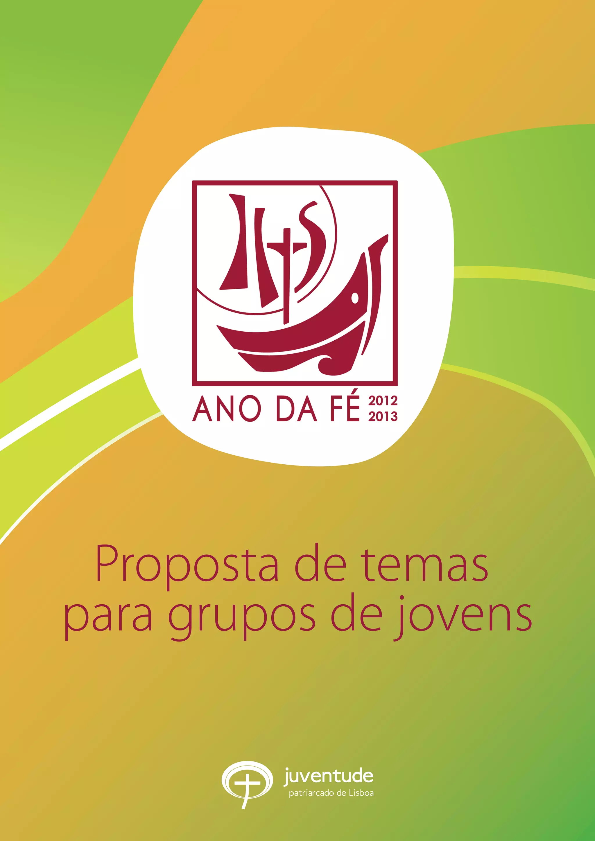 O documento propõe temas para grupos de jovens durante o Ano da Fé, proclamado pelo Papa Bento XVI. O primeiro tema é "Fé - A alegria de acreditar" e discute a importância da fé para os cristãos, definindo fé como confiança no Evangelho e em Deus. A fé não é algo construído pelo homem, mas sim uma atitude de abandono e confiança na Palavra de Deus.