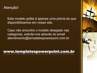 Este documento fornece um modelo de apresentação gratuito para visualização. Contém instruções para solicitar outros modelos não listados através de email e fornece detalhes de contato para obter mais informações sobre modelos pagos e serviços adicionais.