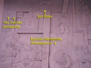O documento descreve vários símbolos encontrados no Templo Mórmon em Salt Lake City, Utah, que são associados com ocultismo e paganismo, como pentagramas invertidos e o "Olho que tudo vê". Ex-mórmons alegam que esses símbolos indicam que a igreja secretamente venera Lúcifer. O documento também analisa esculturas no Centro de Visitantes que podem sugerir a veneração de Lúcifer como a verdadeira fonte de luz.