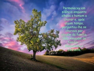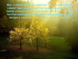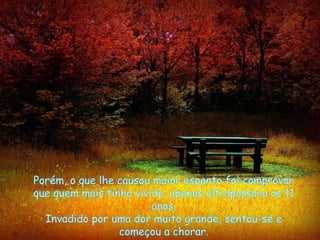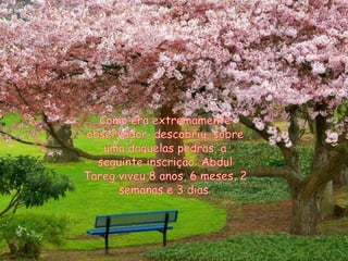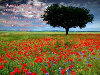 O homem se sentiu angustiado ao perceber que uma pedra era na verdade uma lápide de uma criança. Ao olhar ao redor, ele viu que a pedra seguinte também tinha uma inscrição, o que o levou a refletir sobre o que realmente importa na vida.