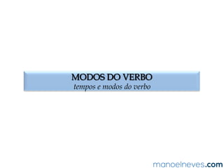 O documento discute os tempos e modos verbais da língua portuguesa, abordando aspectos como açãoreal, hipótese e ordem. Exemplos de frases ilustram o uso dos modos indicativo, subjuntivo e imperativo, bem como a flexão verbal adequada. O texto também inclui questões e soluções comentadas sobre o correto uso dos verbos.