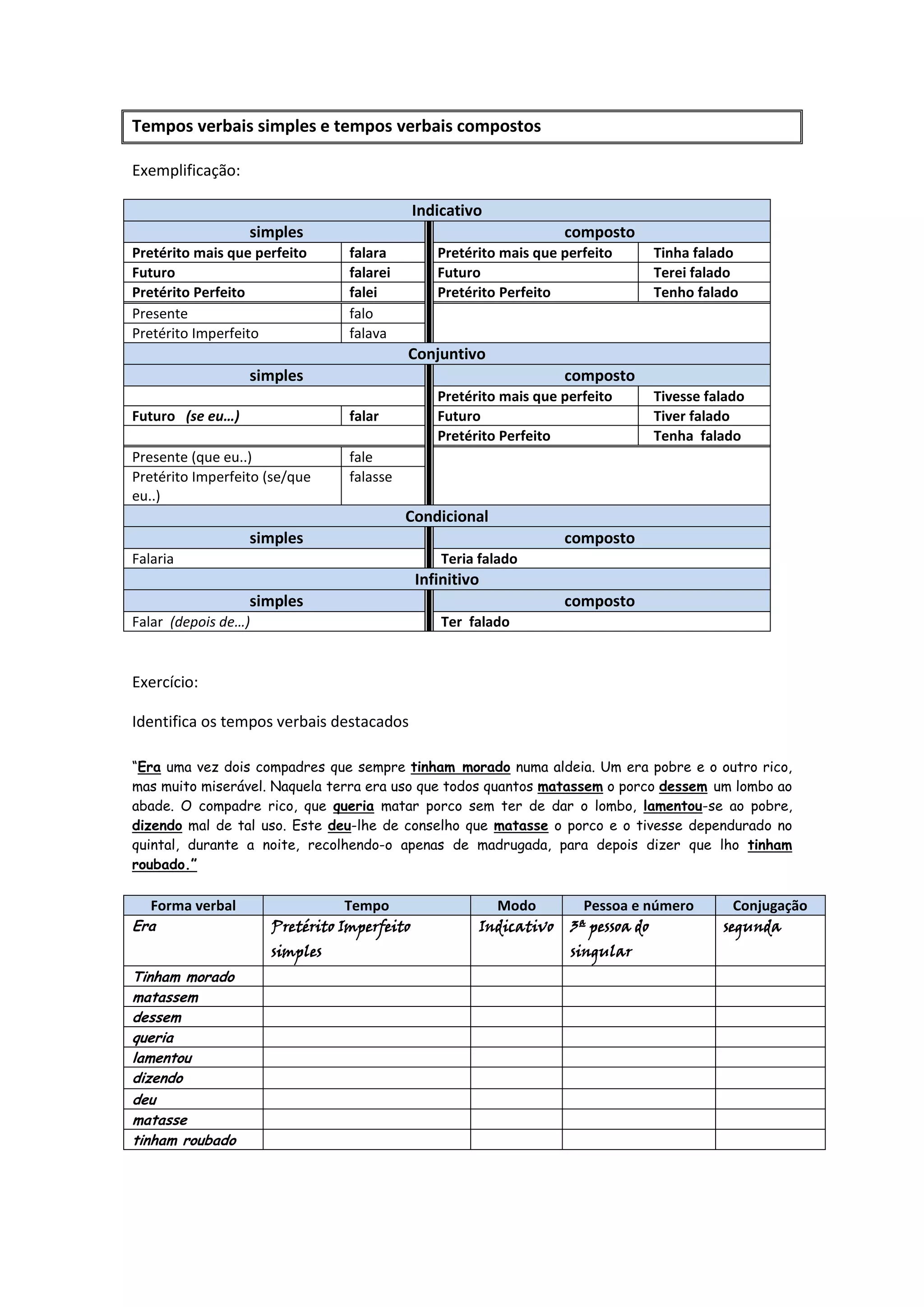 1) O documento descreve os tempos verbais simples e compostos no português.