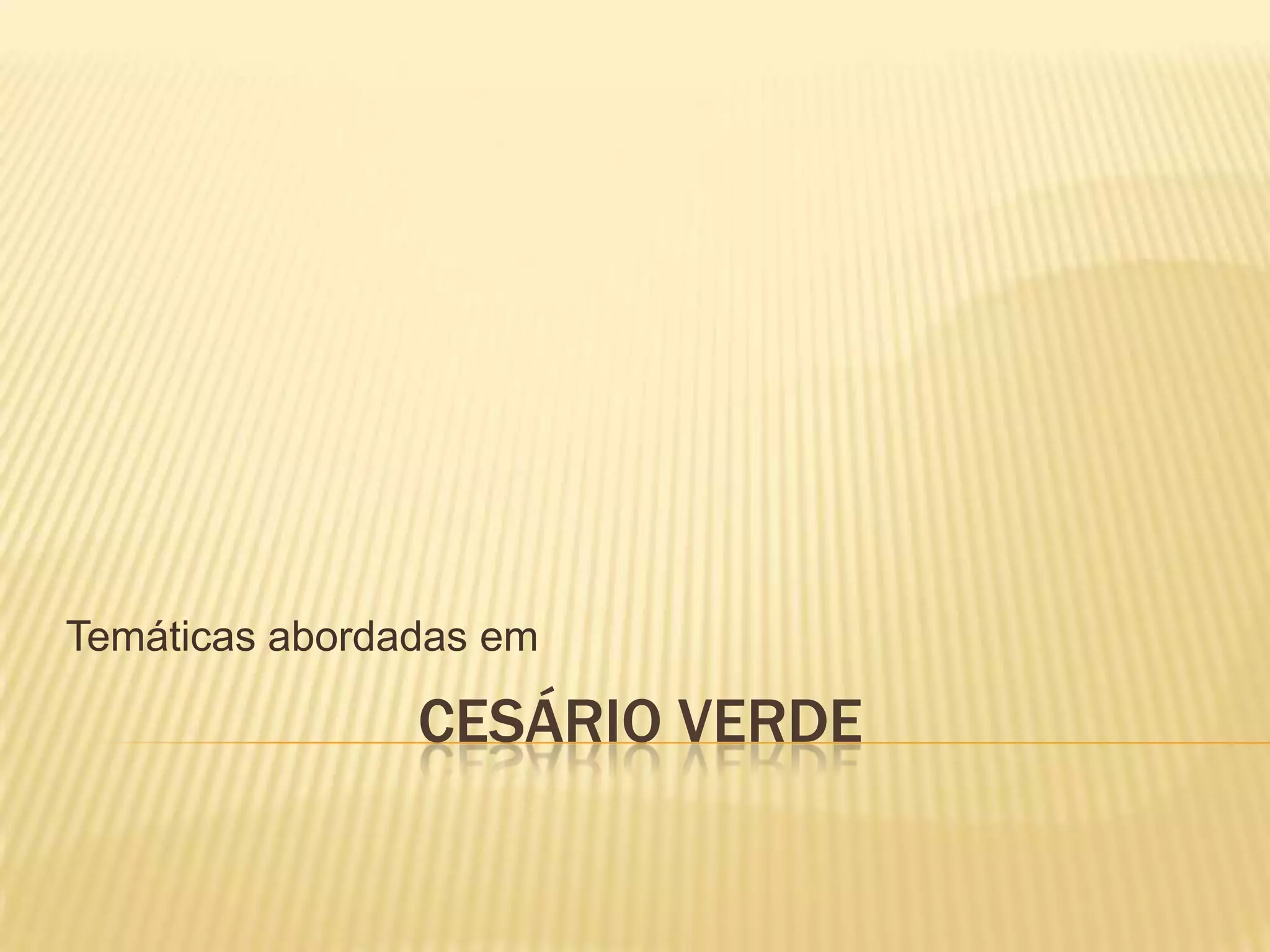 O documento resume os principais temas abordados pelo poeta Cesário Verde: a oposição entre a mulher do campo e da cidade, o campo versus a cidade, e questões sociais como a opressão dos desfavorecidos.