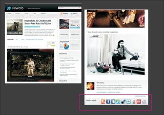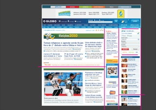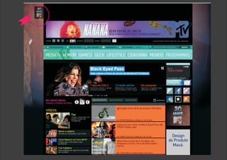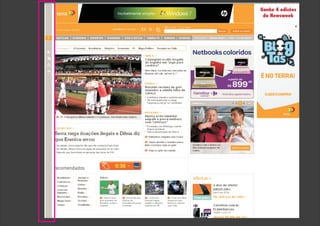 O documento discute as tendências da internet, como a integração entre televisão e web, o compartilhamento facilitado por redes sociais e o desenvolvimento do design de sites para melhor aproveitar o espaço disponível em telas maiores.
