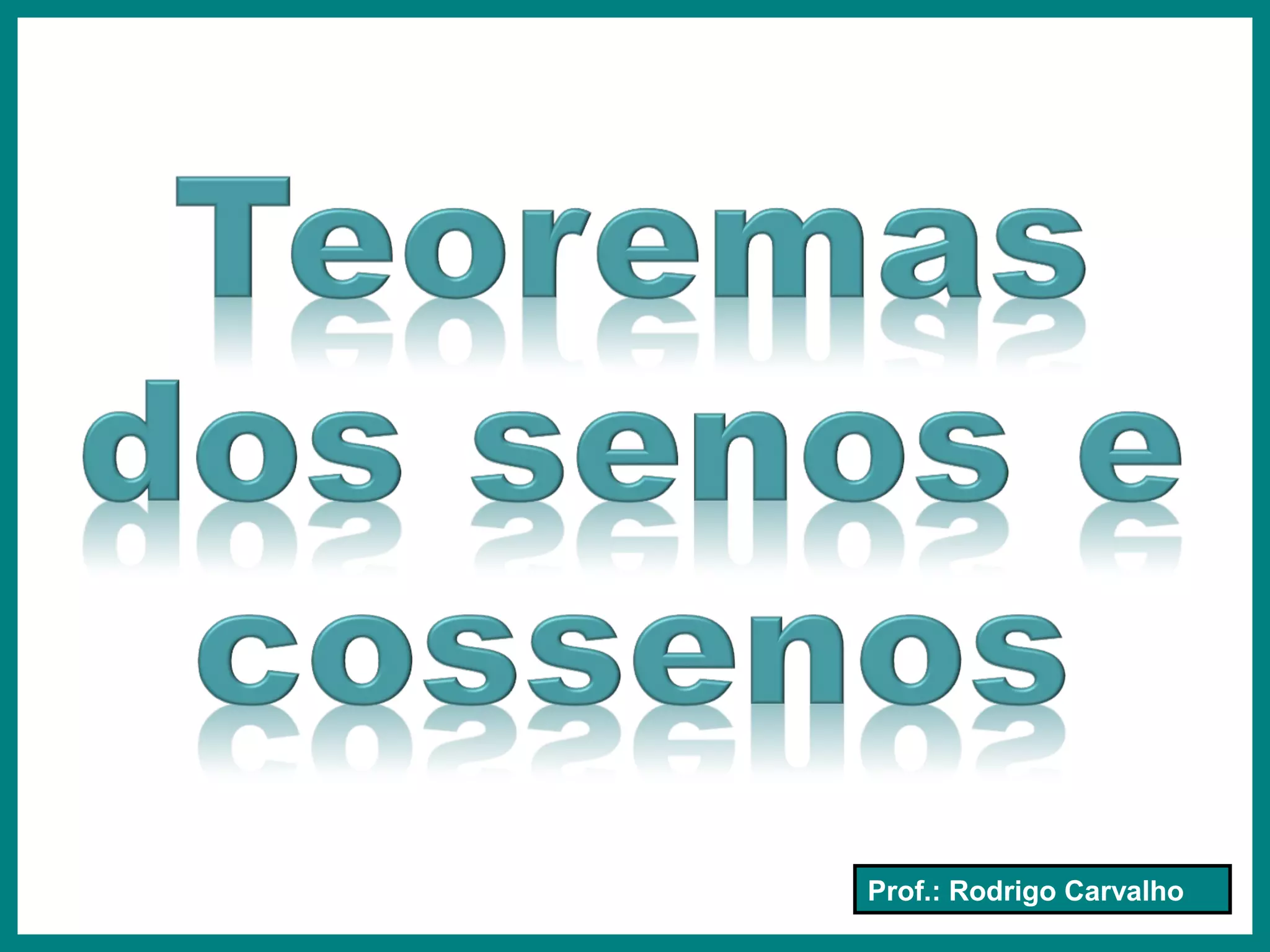 1) O Teorema dos Senos estabelece que os lados de um triângulo são diretamente proporcionais aos senos dos ângulos opostos. 2) O Teorema dos Cosenos diz que o quadrado da medida de um lado de um triângulo é igual à soma dos quadrados das medidas dos outros dois lados menos duas vezes o produto dessas medidas pelo cosseno do ângulo entre eles. 3) O documento fornece exemplos de exercícios para praticar os teoremas, incluindo um problema geométrico sobre um ret