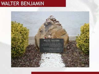 Walter Benjamin nasceu em Berlim em 1892, filho de judeus comerciantes. Estudou filosofia e literatura, interessando-se pelo marxismo e arte. Publicou ensaios influentes sobre reprodutibilidade técnica na arte antes de fugir dos nazistas, cometendo suicídio na fronteira entre França e Espanha em 1940 para não ser capturado.