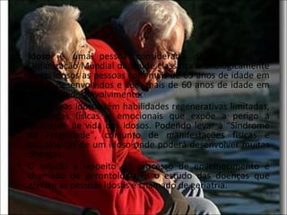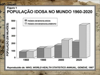 1) O documento discute o envelhecimento populacional no Brasil e seus impactos sociais e no sistema de saúde.