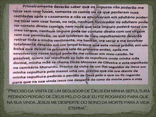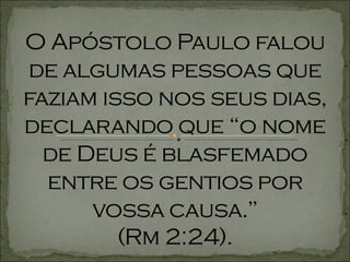 O documento discute o significado do Terceiro Mandamento de não tomar o nome de Deus em vão. Ele explica que isso significa declarar-se filho de Deus com palavras mas continuar vivendo da mesma forma de antes, sem mudanças no comportamento.