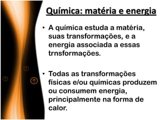 1) Reações químicas podem liberar ou absorver calor;