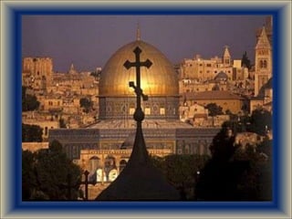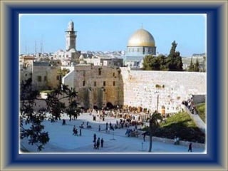 O documento descreve a longa história de Jerusalém e sua importância religiosa. Ele detalha como os cananeus e outras tribos se estabeleceram na região há mais de 5 mil anos e como os jebuus fundaram Jerusalém. Ao longo dos séculos, vários impérios dominaram a região, impedindo que os povos locais tivessem um estado forte e unificado.