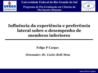 Este documento resume três estudos sobre a influência da preferência lateral e experiência sobre o desempenho e ativação muscular dos membros inferiores durante o ciclismo. O primeiro estudo investigou se a preferência lateral influencia a ativação muscular bilateralmente e se a experiência afeta qualquer assimetria. Os outros estudos examinaram se a preferência afeta a eficiência e ativação muscular unilateralmente. Os resultados do primeiro estudo serão apresentados.