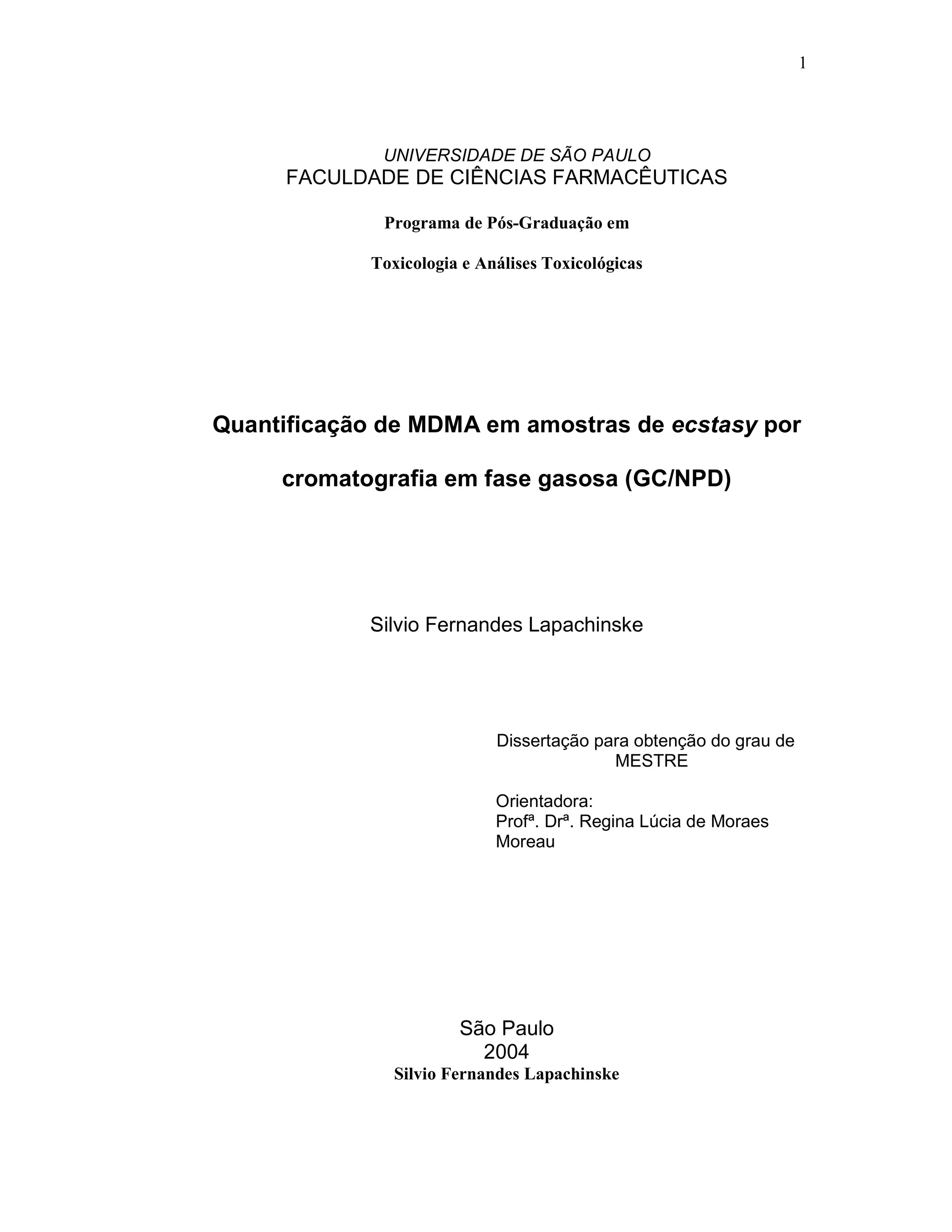 O documento descreve um estudo sobre a validação de um método analítico para quantificar MDMA em amostras de ecstasy por cromatografia gasosa. O método foi aplicado para analisar 25 amostras apreendidas no estado de São Paulo. A maioria das amostras (84%) continha apenas MDMA, com concentrações variando entre 30,9-92,7mg. O método desenvolvido mostrou-se capaz de quantificar MDMA em amostras de ecstasy com precisão e especificidade.