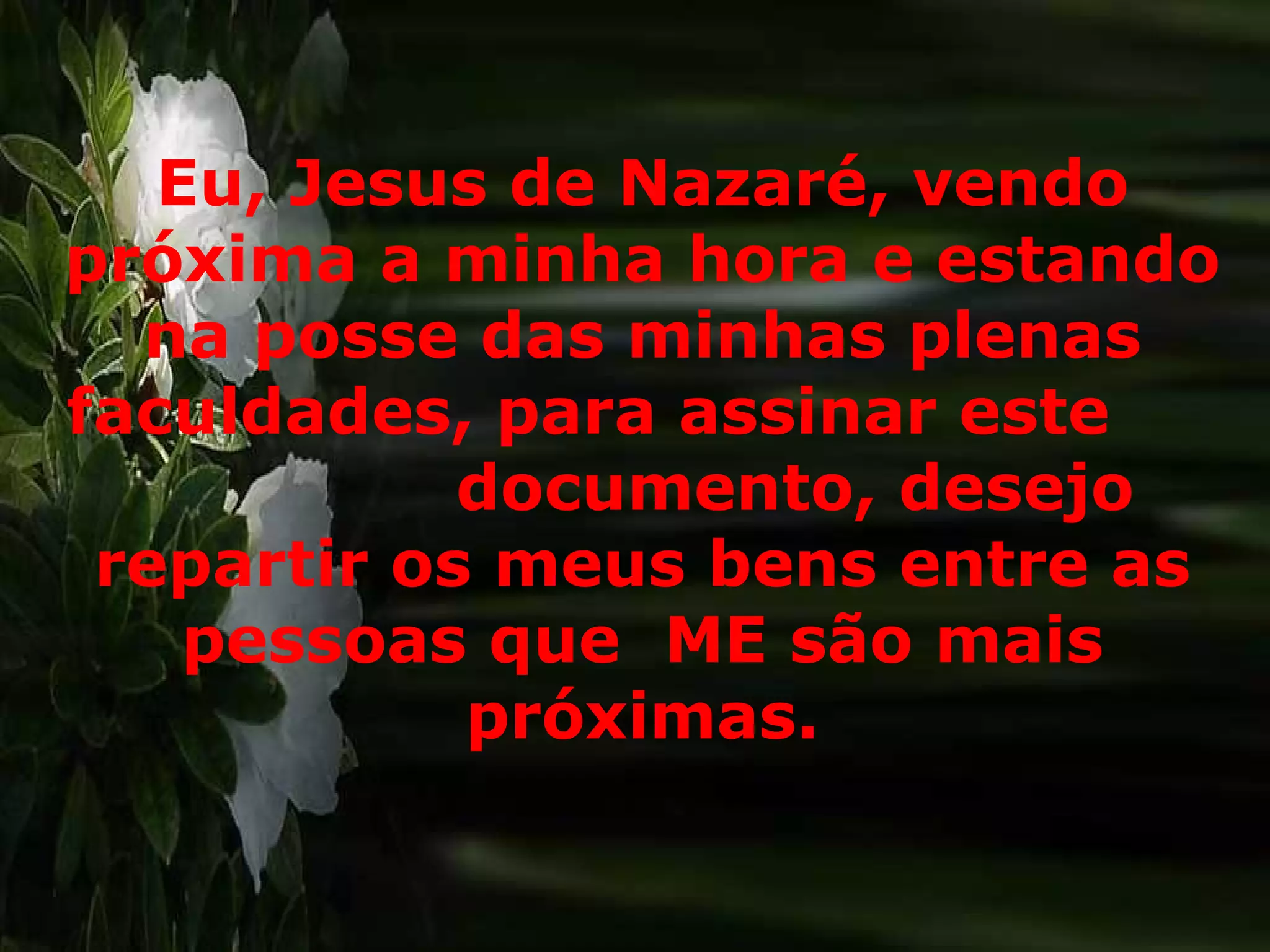 Eu, Jesus deNazaré, vendo próxima a minha hora e estando na posse das minhas plenas faculdades, para assinar este documento, desejo repartir os meus bens entre as pessoas que ME são mais próximas.