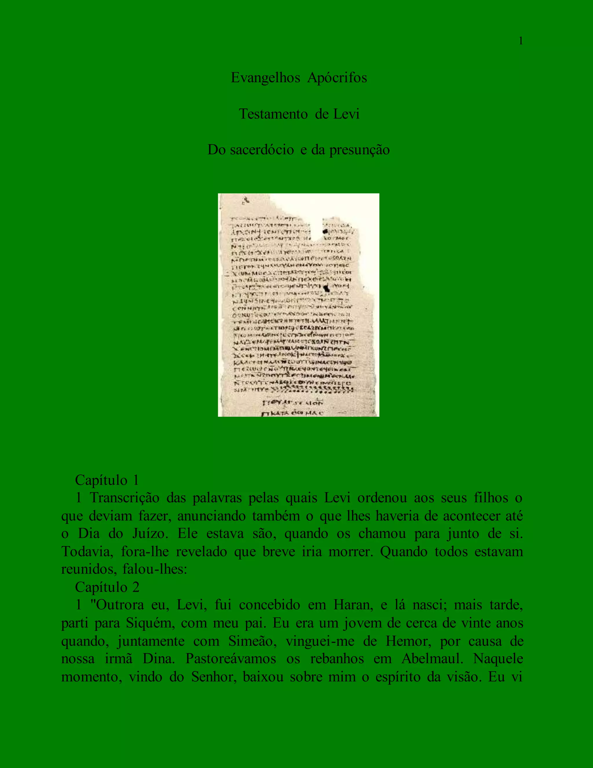 1) Levi teve uma visão de sete céus e um anjo o escolheu para ser sacerdote de Deus e revelar seus segredos aos homens.