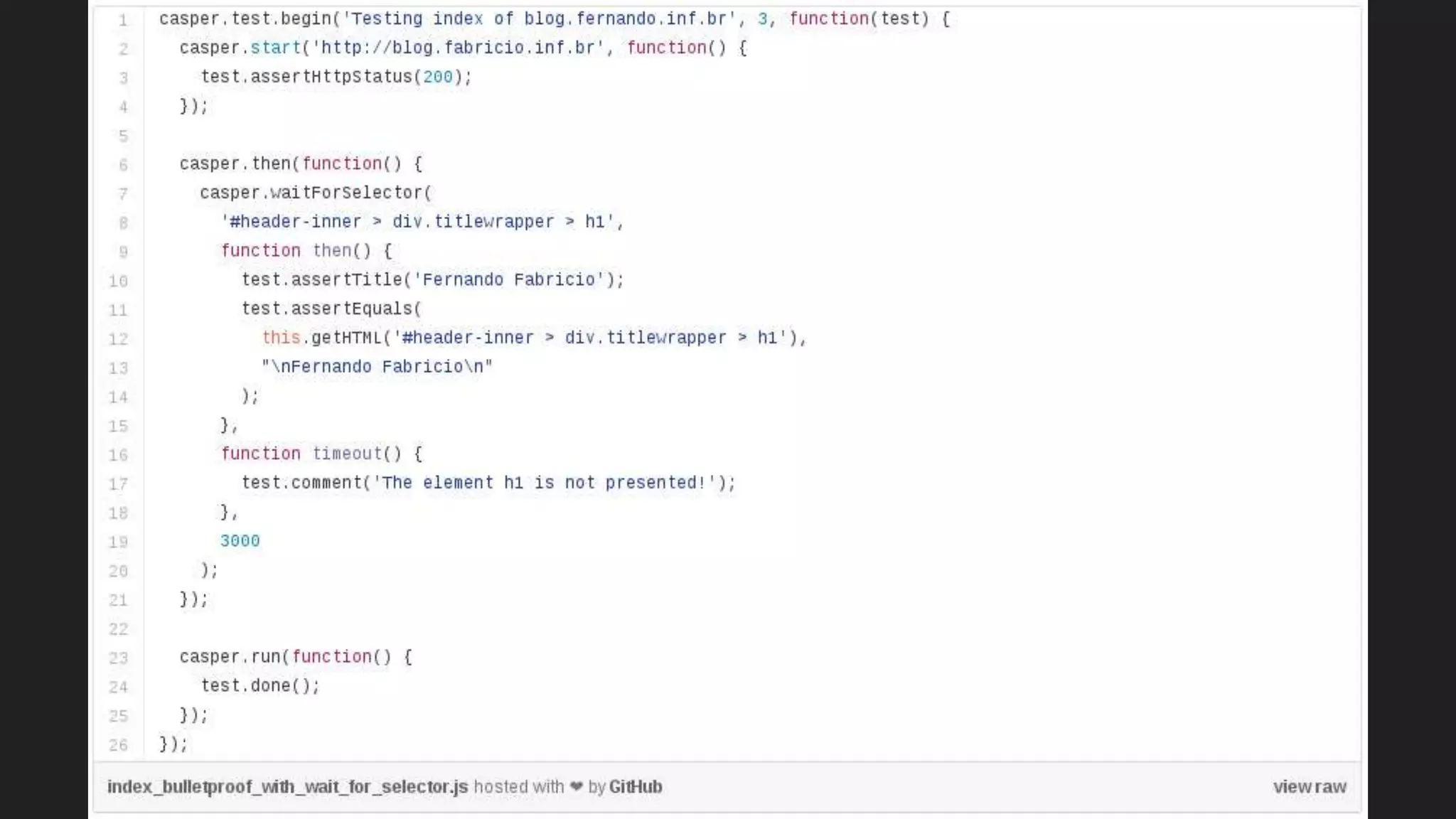 O documento discute ferramentas para testes frontend como SlimerJS, PhantomJS e CasperJS. Ele aborda como pensar nos testes, mapear os fluxos a serem testados, formular casos de teste e estruturar os testes usando CasperJS, incluindo asserções e exemplos de teste.