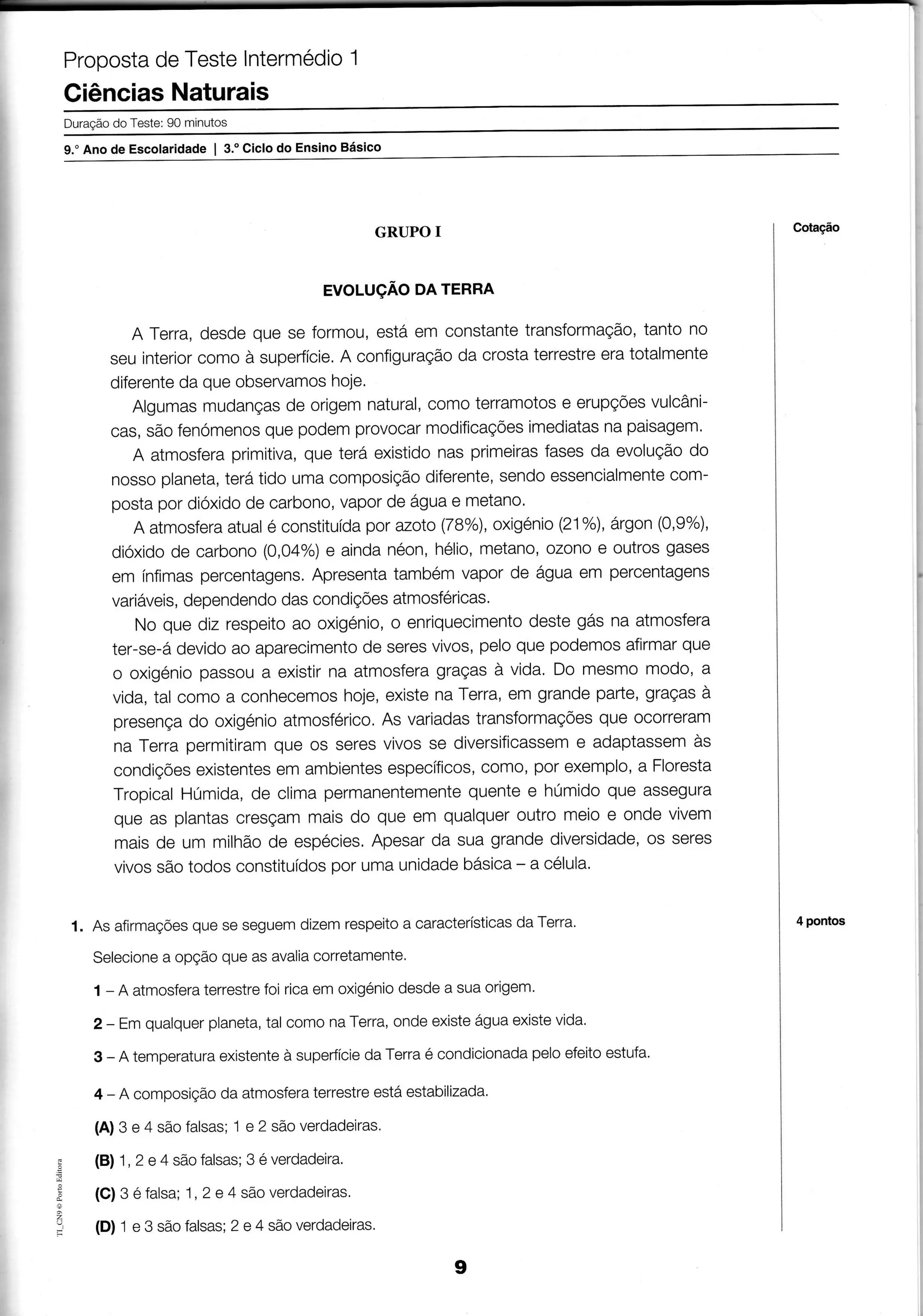 1) A Terra tem sofrido constantes transformações desde a sua formação, tanto no interior como na superfície.