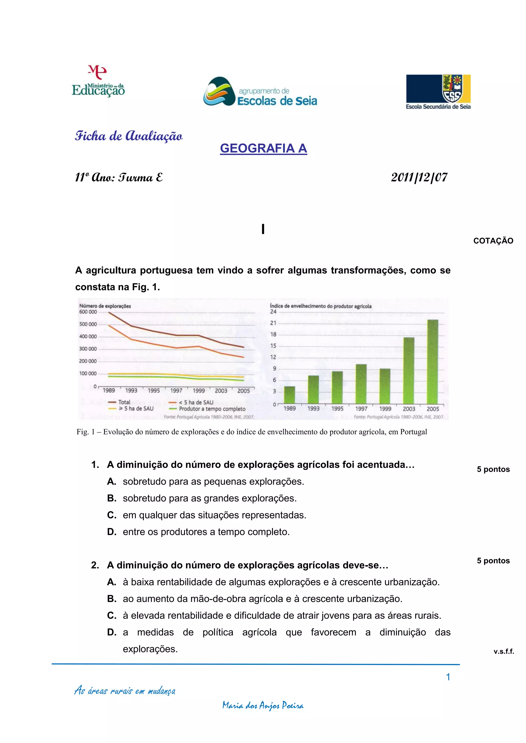 O documento descreve as transformações na agricultura portuguesa, incluindo a diminuição do número de explorações agrícolas e o envelhecimento dos produtores. Também discute a Política Agrícola Comum da União Europeia e o crescimento da agricultura biológica em Portugal, identificando as regiões com maior e menor produção. Por fim, aborda os problemas e potencialidades das áreas rurais portuguesas.