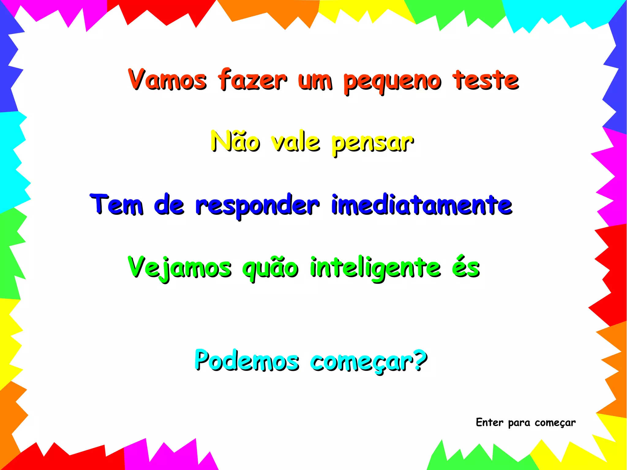 O documento contém um teste de raciocínio lógico com 5 perguntas. As perguntas envolvem lógica sobre posições em uma corrida, impossibilidade lógica, soma de números e identificação do nome da quarta filha de acordo com o padrão dos demais nomes. O texto incentiva respostas rápidas e fornece feedback sobre as respostas corretas.