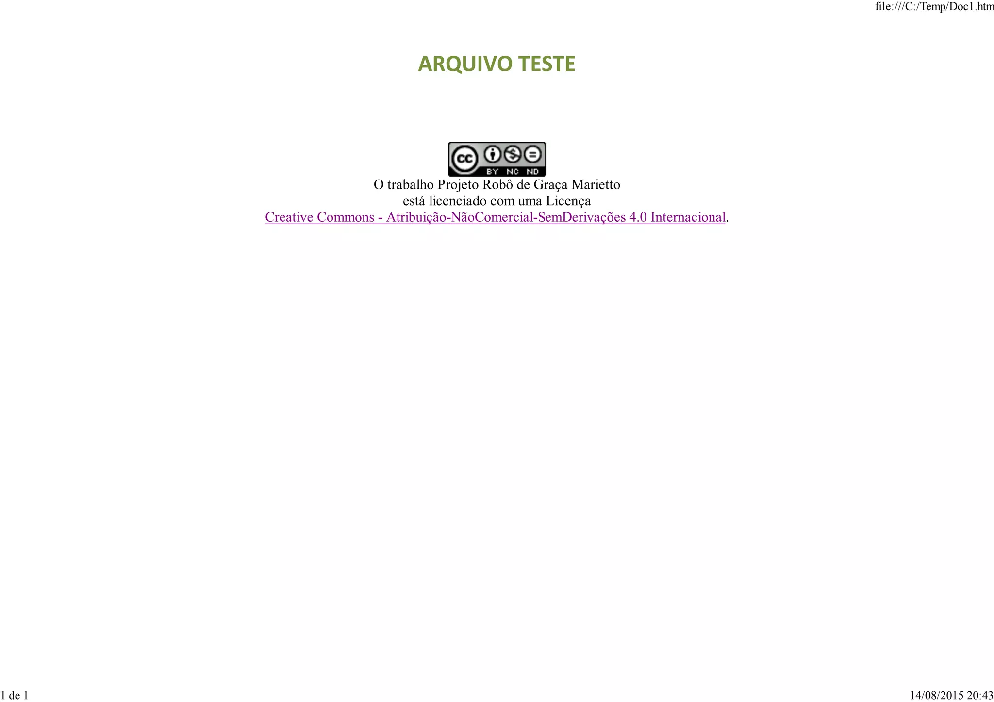 Este documento está licenciado sob a Creative Commons - Atribuição-NãoComercial-SemDerivações 4.0 Internacional, o que significa que pode ser compartilhado gratuitamente para fins não comerciais, desde que seja creditado o autor e não seja modificado.