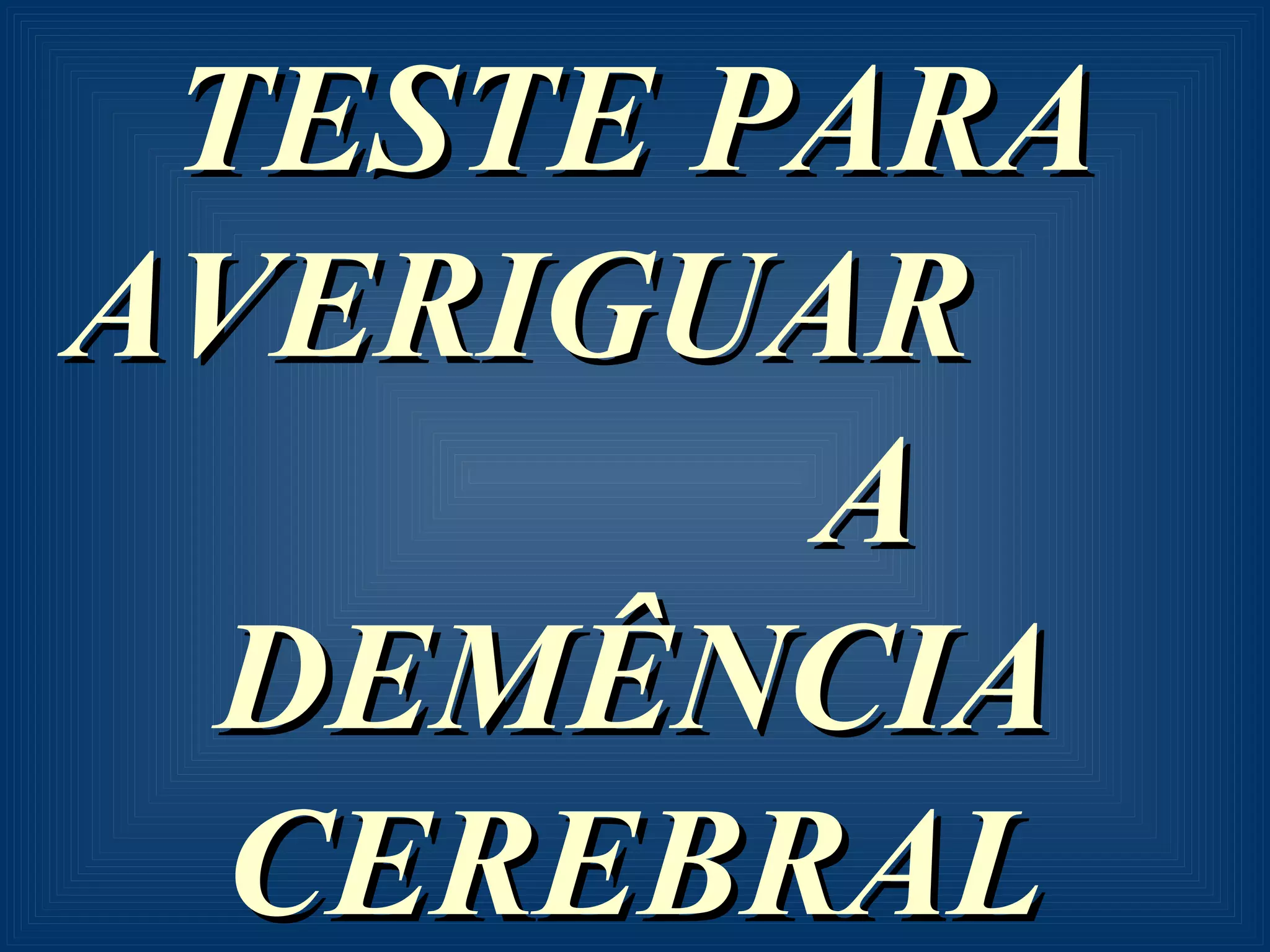 Este documento apresenta um teste de demência cerebral em forma de perguntas. O teste avalia a memória, atenção e raciocínio lógico do leitor, com perguntas sobre pão em uma torradeira, palavras para soletrar, sobreviventes em um acidente aéreo e contagem de passageiros em um ônibus.