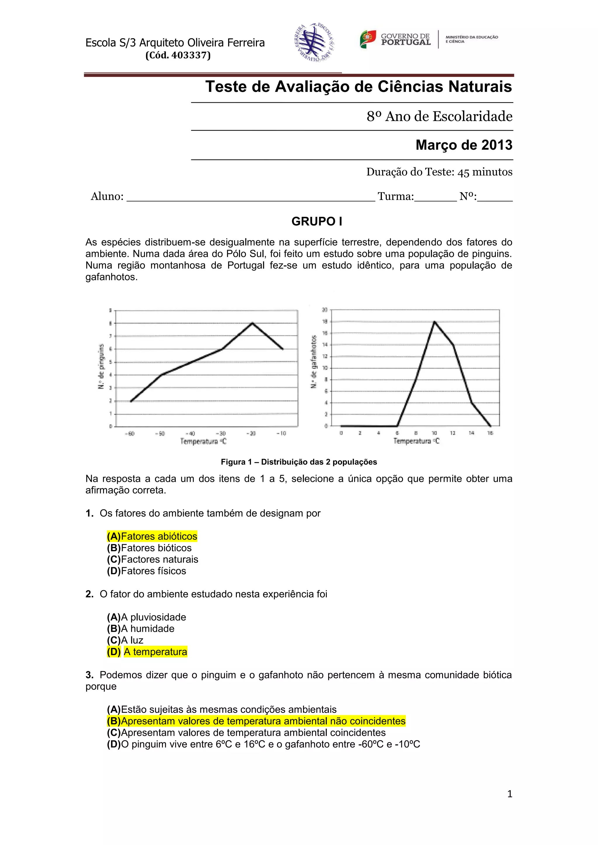 1) O documento apresenta um teste de avaliação de ciências naturais sobre distribuição de espécies e ecossistemas. 2) Aborda questões sobre fatores ambientais, cadeias alimentares e impactos da pesca excessiva. 3) Inclui também uma seção sobre a recuperação da região devastada pela erupção do Monte Santa Helena.