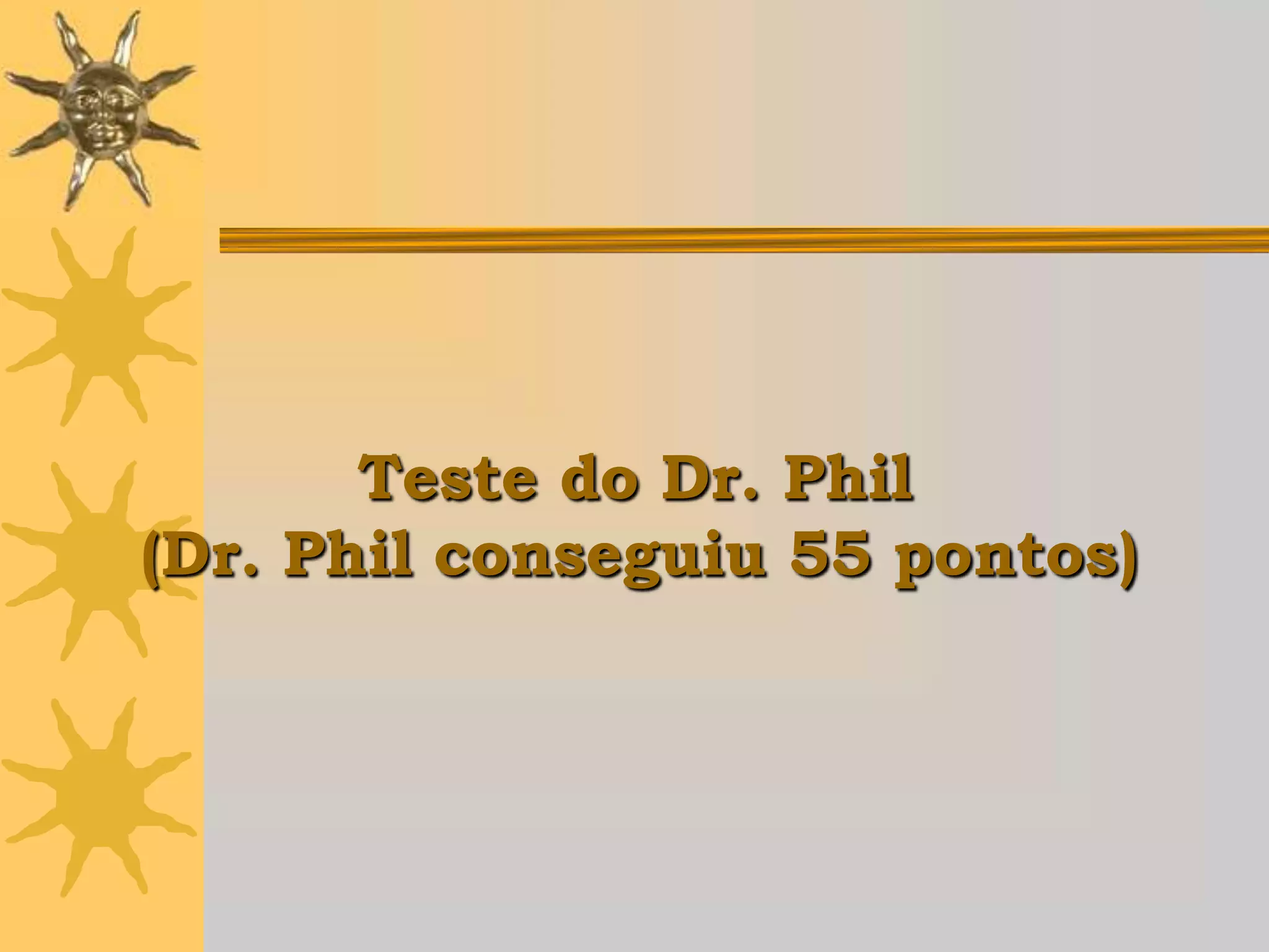 Este teste de personalidade em 10 perguntas avalia como outras pessoas podem ver você com base em sua pontuação total. Uma pontuação entre 21-30 sugere que você é visto como cauteloso e cuidadoso, entre 31-40 como sensível e leal, e acima de 60 como dominante e egocêntrico. O teste pede que você compartilhe seus resultados com amigos.