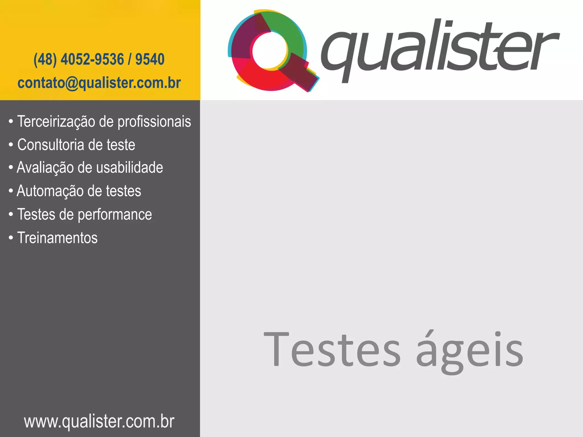 A apresentação resume os serviços e treinamentos oferecidos pela empresa Qualister em testes ágeis, incluindo terceirização de profissionais, consultoria de teste, avaliação de usabilidade e automação de testes. Ela também descreve os princípios dos testes ágeis, como colaboração entre times, testes enxutos e contínuos.