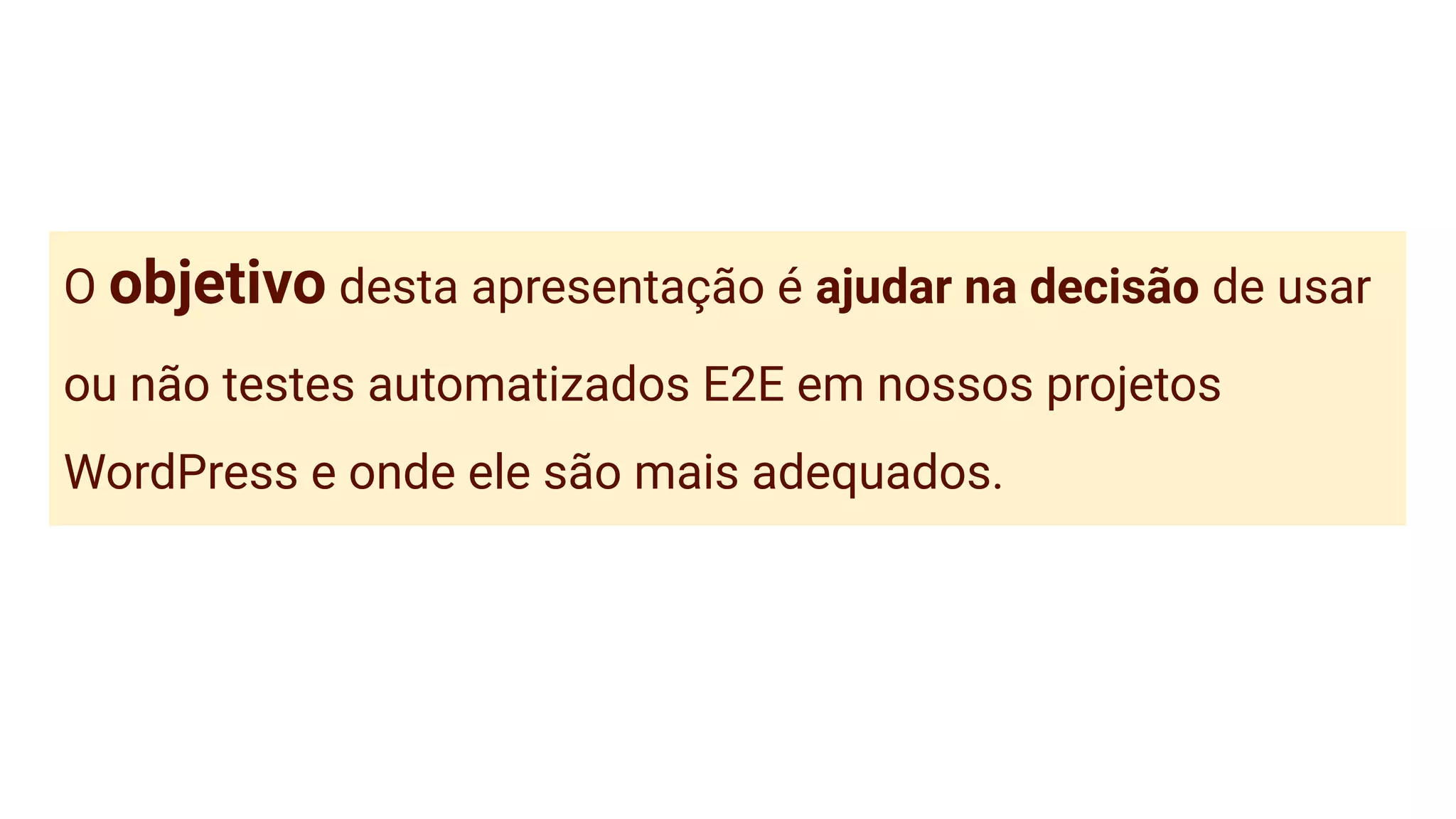 A apresentação aborda a implementação de testes automatizados end-to-end (e2e) em projetos WordPress, discutindo sua importância e adequação. São apresentadas ferramentas como Cypress, bem como um exemplo prático de teste, enfatizando a necessidade de automação nos testes de interface e aceitação. O documento busca orientar os desenvolvedores sobre quando e como adotar esses testes em seus projetos.
