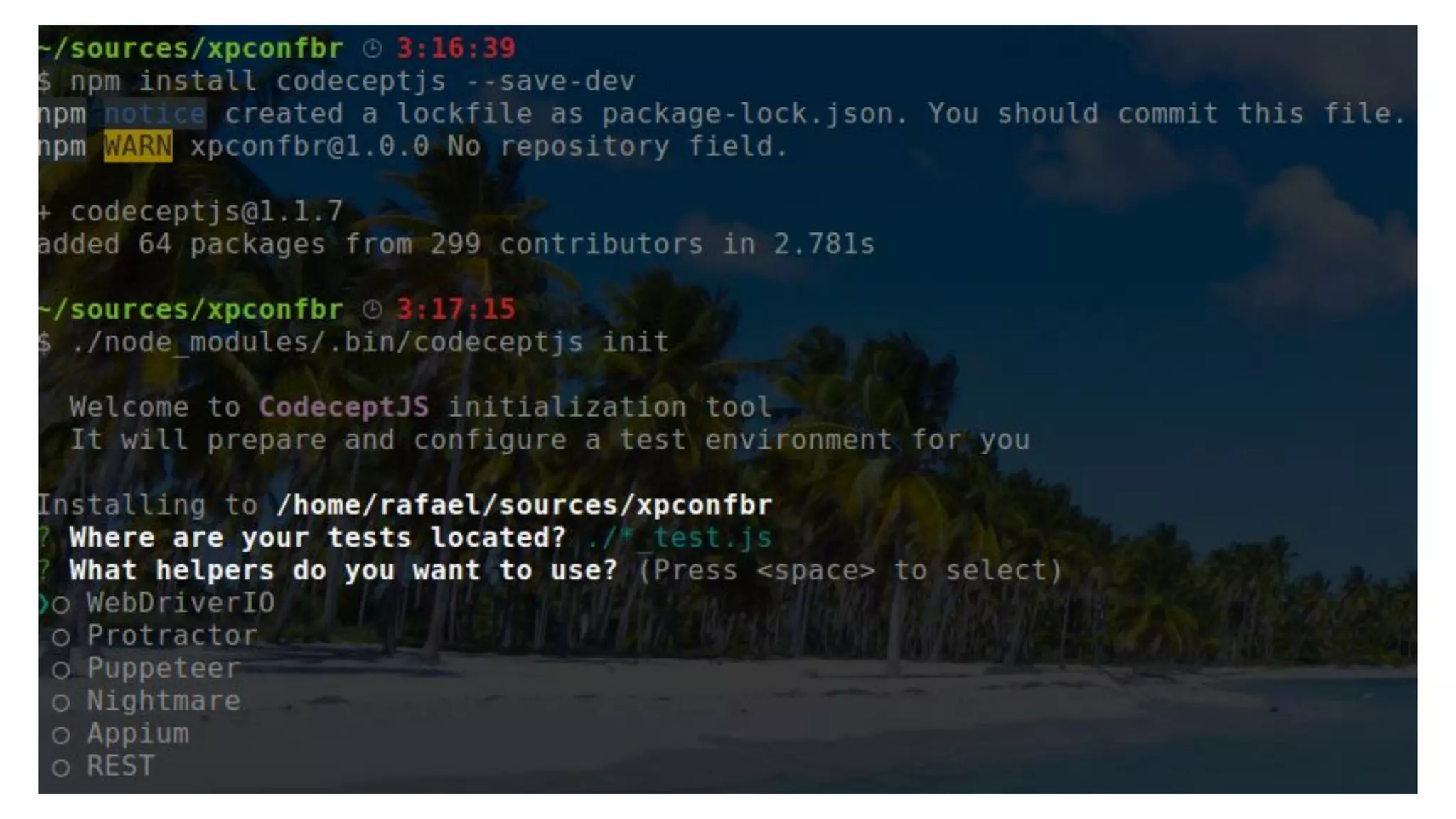 O documento apresenta CodeceptJS, uma ferramenta para testes de interface do usuário que pode ser utilizada por não especialistas. Apresenta a arquitetura básica para testes com CodeceptJS e como a ferramenta permite testes orientados a cenários com integração ao Bitbucket Pipelines. Relata a experiência de implementar 23 testes em uma madrugada com curva de aprendizado zero para os desenvolvedores.