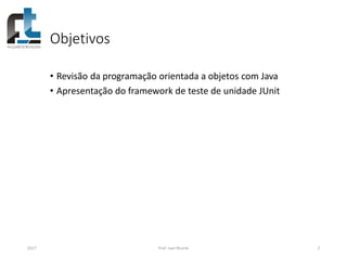 O documento apresenta um curso de programação orientada a objetos com Java e utiliza JUnit para testes de unidade, por meio de um estudo de caso sobre uma vídeo-locadora. Inclui explicações sobre a construção de classes como 'customer' e 'movie', implementação de métodos e a importância dos testes automáticos. O uso de JUnit é destacado, com ênfase na criação de métodos de teste, asserções e verificação de resultados.