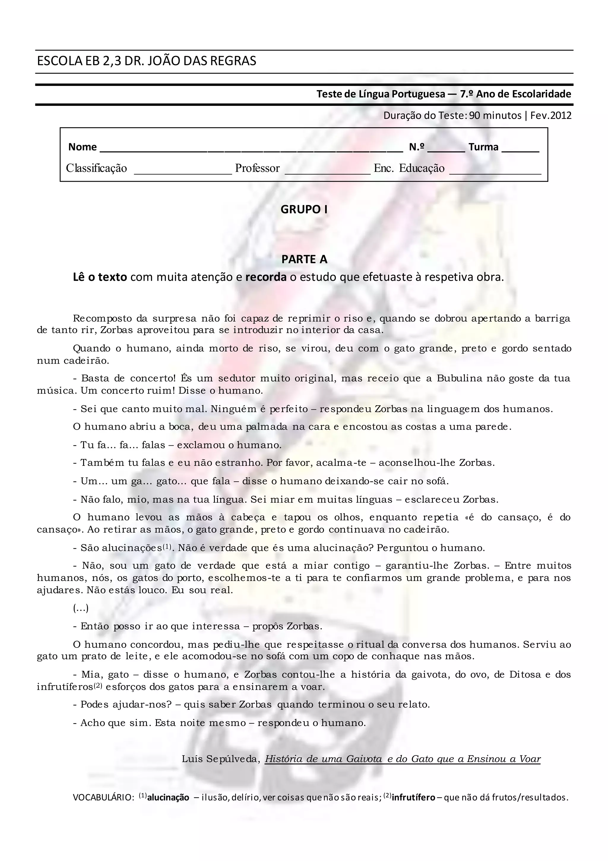 Teste de Língua Portuguesa— 7.º Ano de Escolaridade