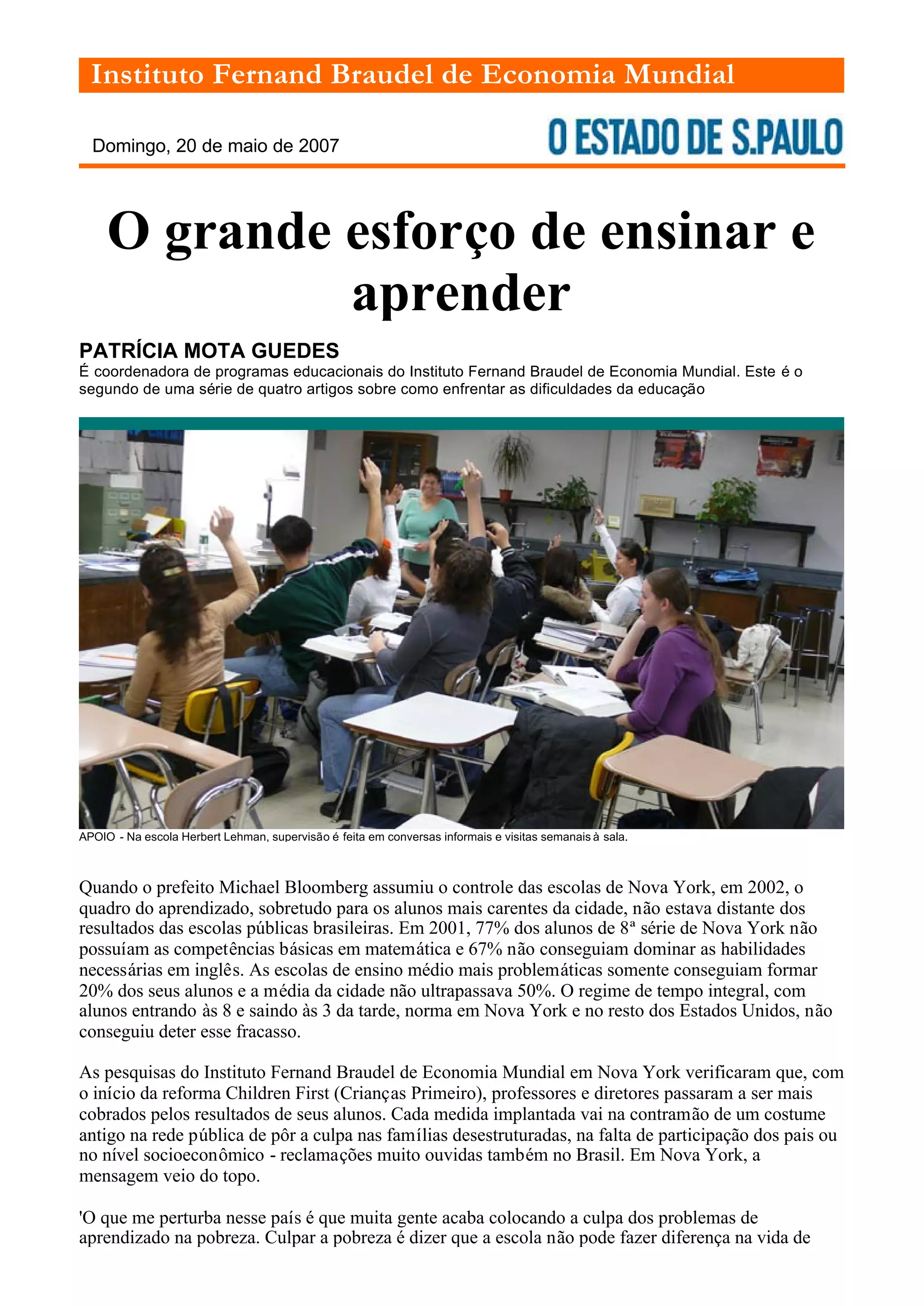 O documento descreve reformas educacionais implementadas em Nova York para melhorar o aprendizado dos alunos. As reformas incluem oferecer incentivos financeiros para professores que trabalham em escolas carentes, criar programas alternativos para recrutar e certificar professores, e aumentar a supervisão e apoio aos professores dentro da sala de aula, com foco em melhorar os resultados dos alunos.