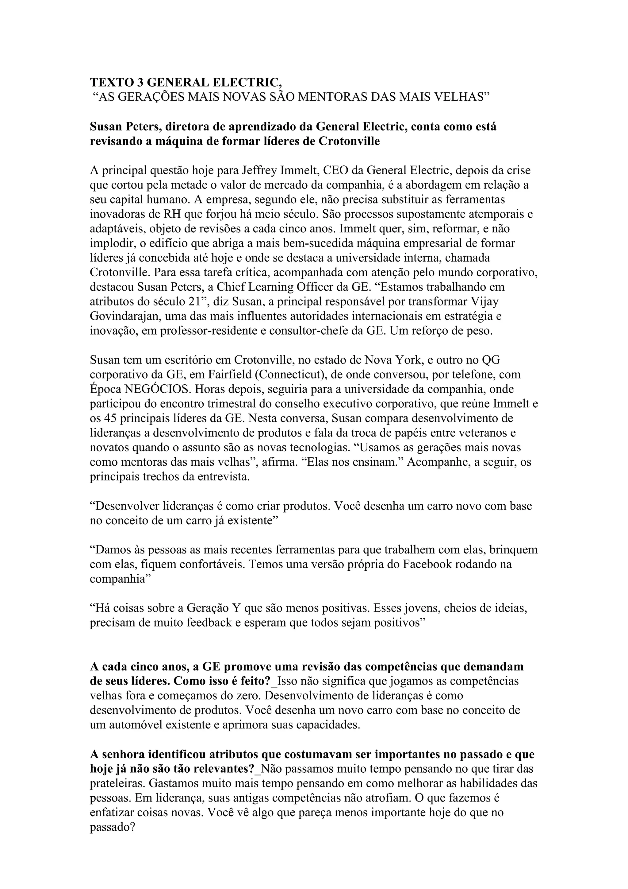 1) A GE está revisando seu programa de formação de lideranças em Crotonville para incorporar atributos do século 21, como colaboração e conexão, em vez de foco em carisma.
