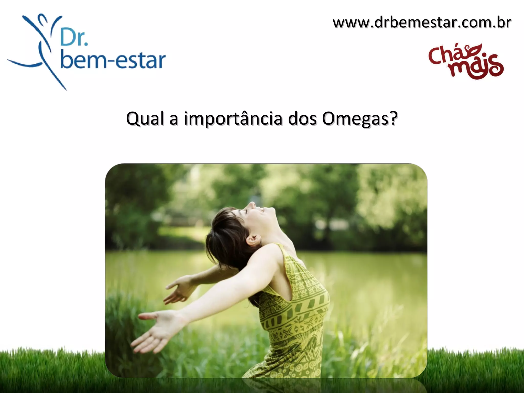 Os ácidos graxos ômega são essenciais para a saúde e devem ser consumidos por meio de uma alimentação equilibrada e suplementos. Eles auxiliam na saúde cardiovascular, inflamação e funcionamento cerebral. Os principais tipos são o ômega-3 presente em peixes, o ômega-6 no óleo de linhaça e o ômega-9 no óleo de borragem.