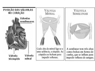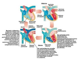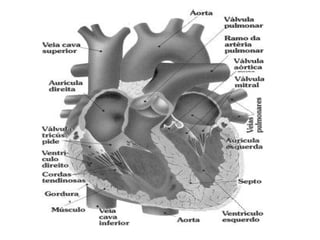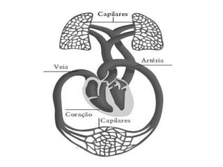 O documento descreve o sistema cardiovascular, incluindo suas principais partes e funções. O sistema é composto pelo coração e vasos sanguíneos, que transportam o sangue pelo corpo. O sangue é constituído de plasma, hemácias, leucócitos e plaquetas, cada qual com uma função importante de transporte de substâncias ou defesa do organismo.