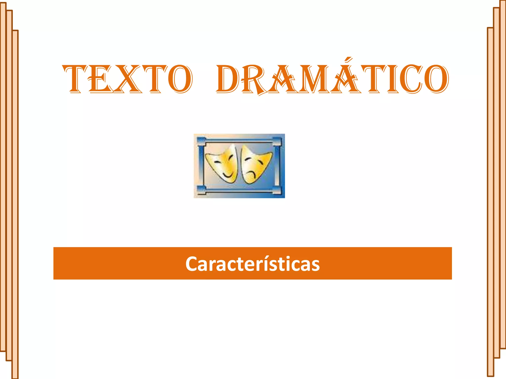 O documento descreve as características e estrutura do texto dramático. Apresenta a estrutura interna dividida em exposição, conflito e desenlace, e a estrutura externa com divisões em atos e cenas. Também descreve as modalidades do discurso, categorias como ação, personagens, espaço e tempo, além de formas do gênero dramático e outros intervenientes no texto.