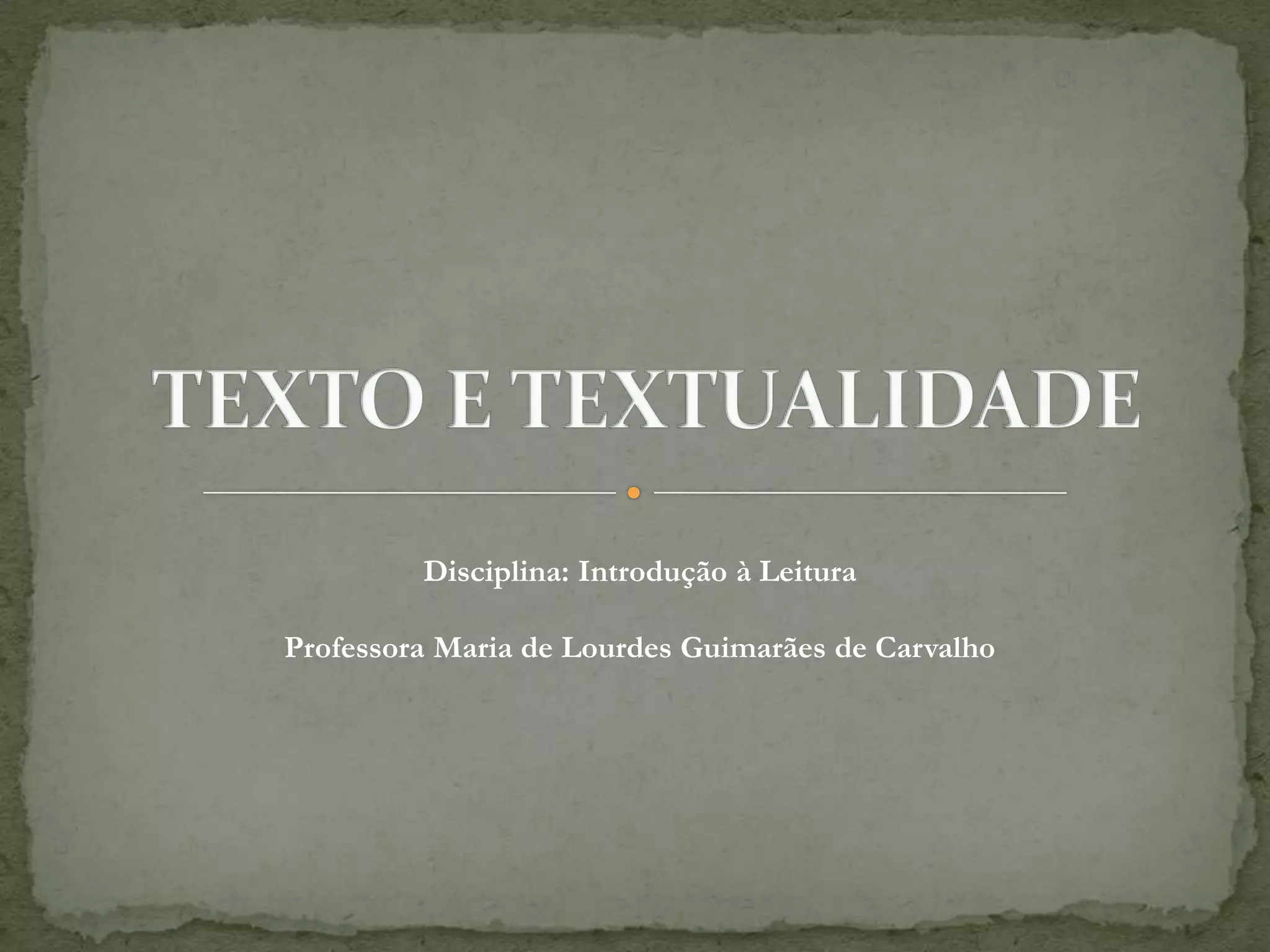 O documento discute o que é um texto e suas principais características. Um texto é uma unidade de linguagem com função comunicativa que possui coerência semântica, coesão formal e fatores pragmáticos que contribuem para sua produção e compreensão, como intenções do autor e contexto sociocultural. Um texto bom é aquele que é coerente, coeso e atende fatores pragmáticos como informatividade e adequação à situação.