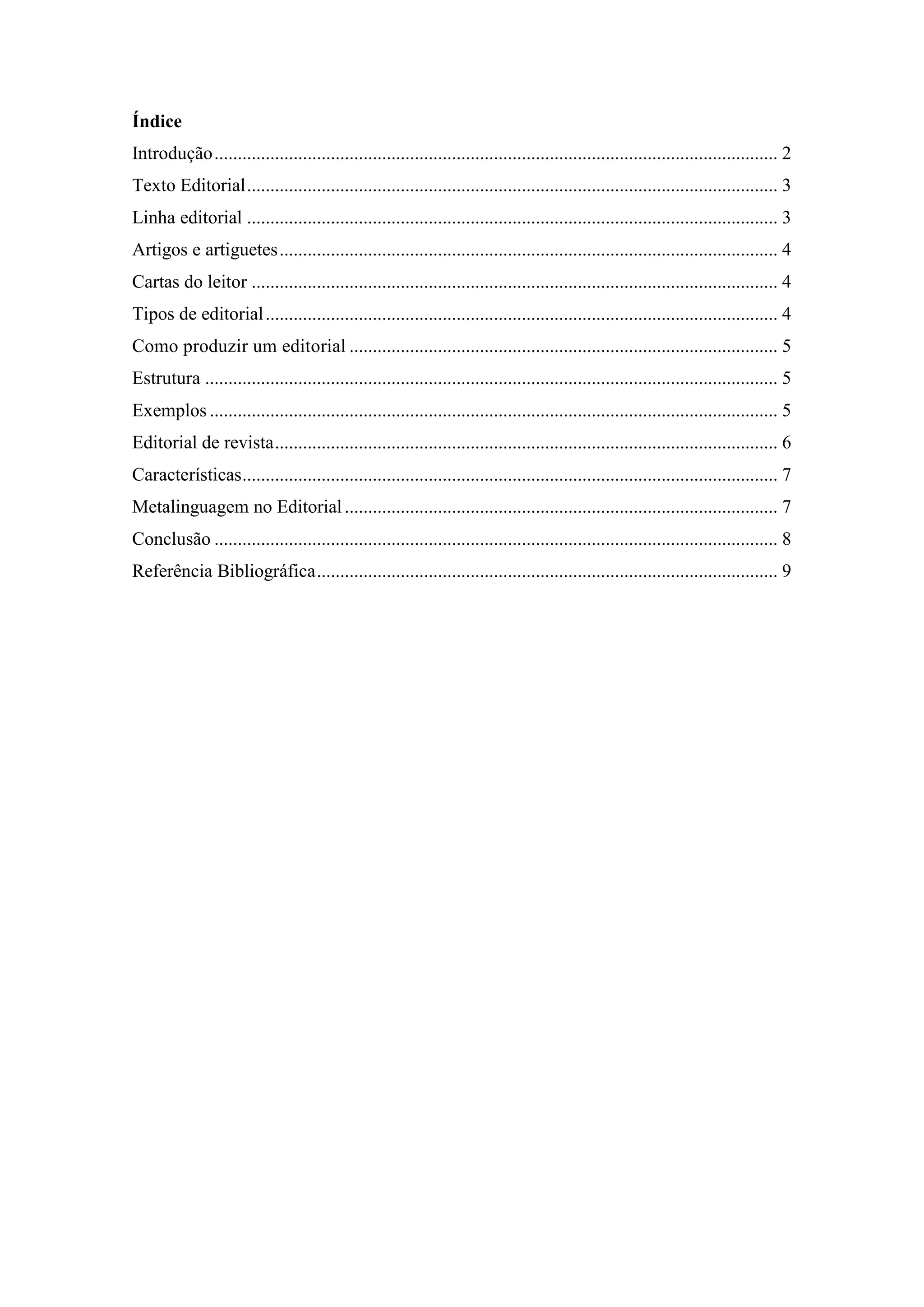 O documento discute o texto editorial como um gênero jornalístico opinativo que aparece no início das colunas de jornais e revistas. Apresenta as características do editorial, como sua estrutura e função, e discute como produzir editoriais em diferentes veículos de comunicação. Também fornece exemplos de editoriais em jornais e revistas.