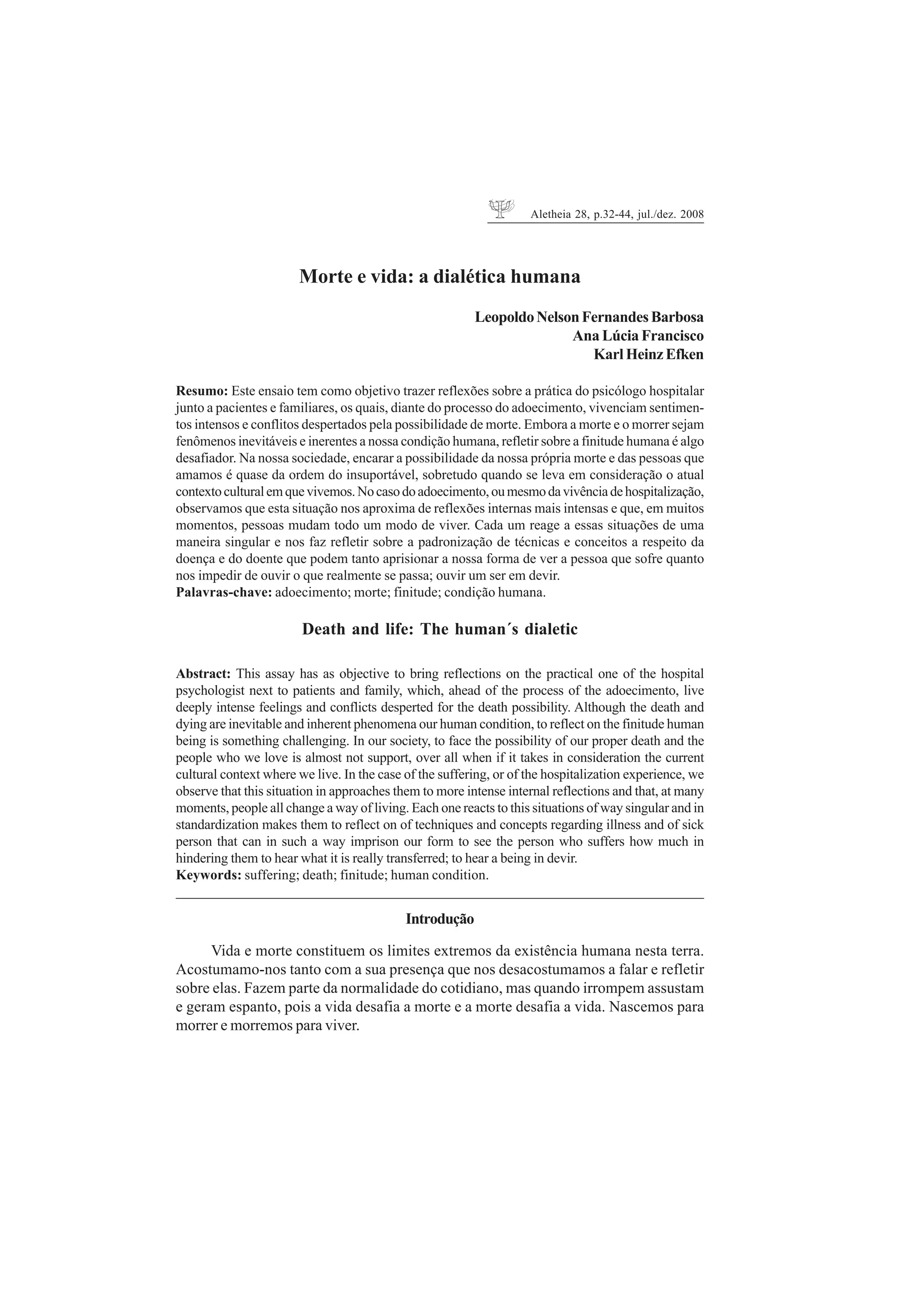 1) O documento discute a morte e o morrer no contexto da prática do psicólogo hospitalar, especialmente como pacientes e familiares lidam com sentimentos intensos diante do processo do adoecimento e da possibilidade da morte.